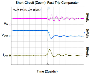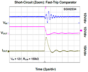 2、芯片集成的快速過流響應(yīng)比較器可以在發(fā)生瞬態(tài)短路時快速響應(yīng),及時保護(hù)系統(tǒng)安全。