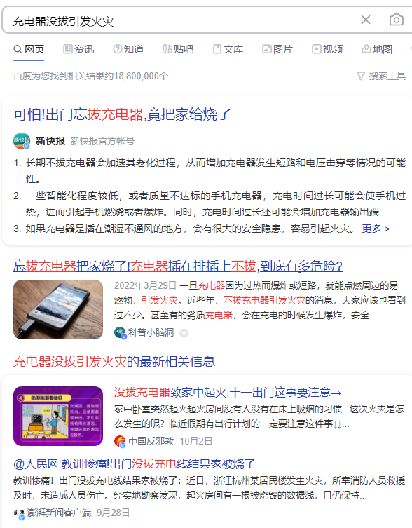 其次存在火災風險。這種案例已經發(fā)生多起,尤其網上購買的劣質充電器,火災風險更大。不能掉以輕心。據光明網報道,今年9月,杭州某小區(qū)居民因充電器沒拔引發(fā)火災,所幸沒有造成人員傷亡。