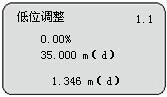 低位調(diào)整用于量程設(shè)置。它與高位調(diào)整一起決定了電流輸出線性對(duì)應(yīng)關(guān)系的比例。在主菜單中,當(dāng)菜單號(hào)為1時(shí),按