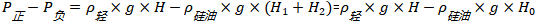 以下公式中:ρ硅油為毛細(xì)管硅油密度;H液為液位測(cè)量的高度;ρ輕為輕介質(zhì)密度;ρ重為重介質(zhì)密度。