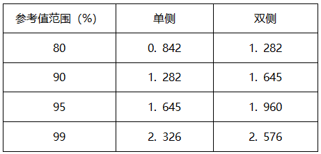 公式中,X為雙側(cè)邊界值;u為標(biāo)準(zhǔn)正態(tài)變量。