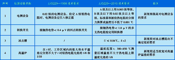 工業(yè)鉑、銅熱電阻作為測(cè)溫儀器,近幾年的制造工藝又有了很大的提高,為了適應(yīng)形勢(shì)的發(fā)展,2010年9月國(guó)家質(zhì)量監(jiān)督檢驗(yàn)檢疫總局發(fā)布了新的工業(yè)鉑、銅熱電阻檢定規(guī)程JJG229-2010,它替代了JJG229-1998檢定規(guī)程。通過學(xué)習(xí),將這兩版檢定規(guī)程的主要改變,歸納為以下幾點(diǎn)。