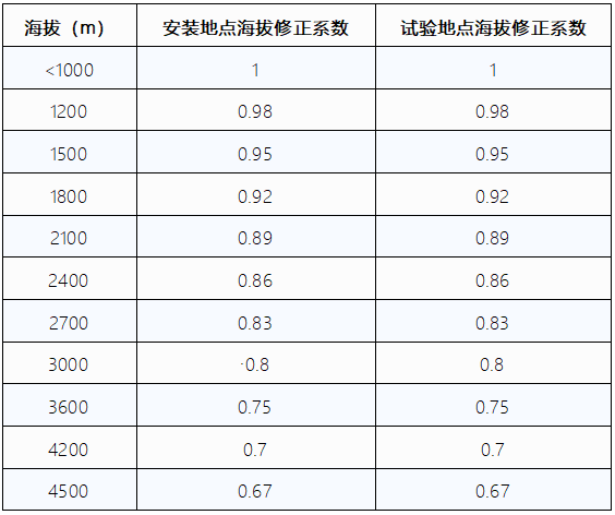 在進行外施耐受電壓試驗時,試驗電壓應乘以(試驗地點海拔修正系數/安裝地點海拔修正系數)。