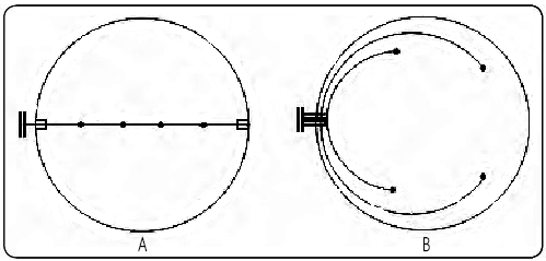 2、B是熱電偶成環(huán)形分布,從反應(yīng)器側(cè)面法蘭口插入,按提前設(shè)計(jì)好的路徑進(jìn)行安裝。該方案根據(jù)不同的工藝要求需要二次設(shè)計(jì)安裝支架,可以在反應(yīng)器內(nèi)構(gòu)件上焊接支架,對于測溫點(diǎn)沒有內(nèi)構(gòu)件的可以在反應(yīng)器器壁上焊接支架,或獨(dú)立設(shè)計(jì)支架,如圖2所示。其優(yōu)點(diǎn)是可應(yīng)用于測溫點(diǎn)多且非直線分布的場合;缺點(diǎn)是設(shè)計(jì)量大,安裝復(fù)雜,支架全部使用螺栓聯(lián)接,對支架長周期使用的穩(wěn)定性提出較高的要求。