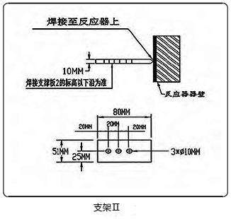 1、中間鏤空的夾板不局限于使用在支架II和延長板上,也可用在其他類型支架熱電偶的固定。要充分考慮反應(yīng)器內(nèi)部高溫環(huán)境所引起的熱電偶膨脹因素,夾板凹槽橫向、縱向空間均比熱電偶外徑大約5mm。在安裝時,固定螺栓為非完全緊固,進(jìn)一步給予熱電偶一定的膨脹空間。夾板尺寸要小于預(yù)焊接在反應(yīng)器其壁上的支架,已減少催化劑沉降對其影響。