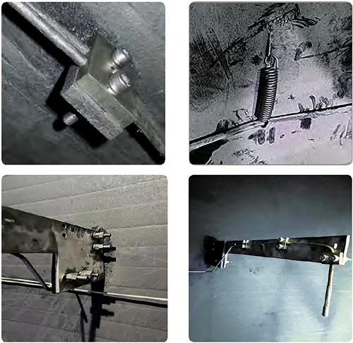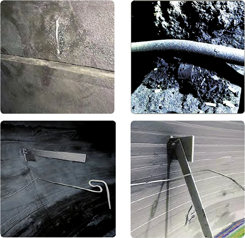 通過渣油加氫換劑檢修時發(fā)現(xiàn),延長支架嚴(yán)重下垂,大量熱電偶從支架脫落,甚至直接斷裂,如圖4所示。分析原因主要有兩點(diǎn):