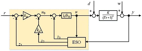 上述被控對象模型代表了工業(yè)過程中一大類自平衡對象,雖然忽略了被控對象可能具有的震蕩特性、非最小相位特性,但由于ADRC的特點,可以將未精確建模的信息通過總和擾動進行估計抵消。實際上以此高階模型作為被控對象推導(dǎo)出的參數(shù)整定公式可以適用于更大范圍。