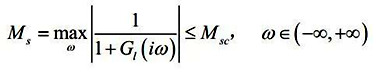 由于被控過程本身具有的不確定性,以及建模過程的不確定性,可以自然地想到利用控制系統(tǒng)的魯棒性作為參數(shù)整定推導(dǎo)的約束性調(diào)節(jié)。在該研究中,選擇容易量化的最大靈敏度Ms作為魯棒性指標。根據(jù)的定義,最大靈敏度約束可表示為: