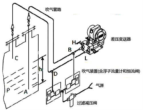圖1 吹氣式液位計(jì)測量原理示意圖