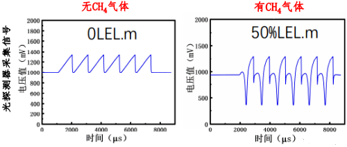 可調(diào)諧半導(dǎo)體激光吸收光譜技術(shù)TDLAS(Tunable Diode Laser Absorption Spectroscopy)氣體吸收光強(qiáng)與氣體濃度和光路長(zhǎng)度的乘積 (LEL·m或ppm·m)呈函數(shù)關(guān)系,采用高分辨率的近紅外波段光譜,利用氣體分子的紅外光譜吸收的“指紋”特征,形成具有識(shí)別度的特征峰波形信號(hào),以此檢測(cè)氣體濃度。