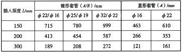 在考慮溫度計套管改進(jìn)措施時,介質(zhì)的密度、黏度、流速是工藝參數(shù)要求,是固定不變的常數(shù),只能從溫度計套管的材料和尺寸上著手進(jìn)行調(diào)整。從表1可以看出,各種常用材料之間的彈性模量差別不大,且其比值的開方才作為影響固有頻率的系數(shù)。因此,為了滿足頻率限制條件而調(diào)整溫度計套管材質(zhì)選用彈性模量的方法不足取。