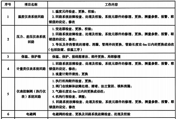 儀表定額中包括的自控儀表日常維護(hù)工作內(nèi)容有日常巡檢、衛(wèi)生清潔、定期檢查、值班、故障處理并填寫相關(guān)記錄。