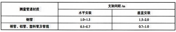 15、儀表管道應(yīng)采用管卡固定在支架上。當(dāng)管道與支架間有相對運動時,應(yīng)在管道與支架間加軟墊。支架間距宜符合表1。