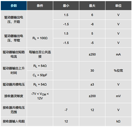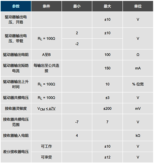 RS422和RS485收發(fā)器往往容易混淆,往往將其中一個當做另一個的全雙工版本。然而,其共模范圍及接收器輸入電阻方面的電氣差異使得這些標準適合于不同的應用。由于RS485滿足所有的RS422規(guī)范(表3),RS485驅(qū)動器可用于RS422應用。然而,相反則不成立。RS485驅(qū)動器的共模輸出為-7V至+12V,而RS422的共模范圍僅為±3V。RS422驅(qū)動器的最小接收器輸入電阻為4kΩ,而RS485驅(qū)動器則為12kΩ。