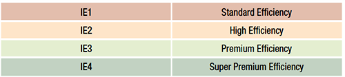 2014年國際電工委員會正式發(fā)布了IEC60034-30-1 Efficiency classes of line operated AC motors(IE code),該標(biāo)準定義了電動機的效率等級,總共分為5個等級: