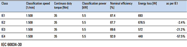 例如5.5kW的電動機,IE1電機的效率只有87.4%,而IE3電機的效率為89.6%,且損耗相對于IE2下降了21.2%,IE4電機的效率達到了92%,損耗更是下降了57.5%,運行效率和節(jié)能效果明顯。