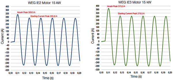 IE2和IE3電動機起動沖擊電流對比