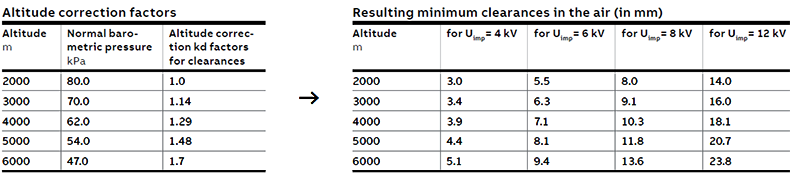 例如當(dāng)海拔為2000米時(shí),電氣間隙的倍增系數(shù)為1,當(dāng)海拔為4000米時(shí),如果還想保持原來(lái)的額定沖擊耐受電壓值,其電氣間隙需要增加至原來(lái)電氣間隙的1.29倍。