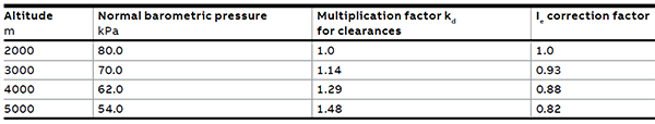 其中H為海拔高度,m在低壓一般取0.5,例如對(duì)于4000米海拔時(shí)Ka系數(shù)為1.28,意味著如果原來(lái)低壓電器的額定絕緣電壓為690V(2000米海拔),那么4000米海拔時(shí)其額定絕緣電壓要達(dá)到690V×1.28≈883.2V。