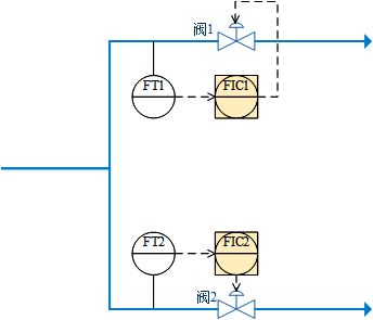 從圖中可以看出控制要求是兩個(gè)流量控制。如果是兩種不同的物料兩個(gè)流量控制這是個(gè)正常的控制方案。但是現(xiàn)在是從同一根管線(xiàn)過(guò)來(lái)的物料,如果想兩個(gè)流量控制同時(shí)投自動(dòng),則要求總管的供應(yīng)充分。也就是說(shuō)在現(xiàn)有條件下想滿(mǎn)足兩個(gè)流量控制同時(shí)自動(dòng)是不可能的。最徹底的解決方案和最簡(jiǎn)單工程化的解決方案是首選。