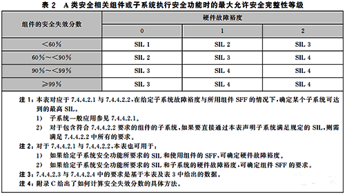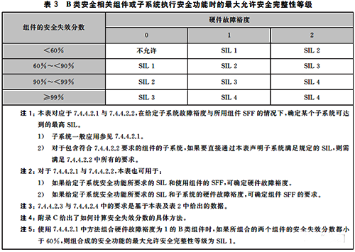 注:表6中的HFT要求表示最小的系統(tǒng)或SIS子系統(tǒng)冗余度。取決于具體應(yīng)用、設(shè)備失效率和檢驗測試間隔,根據(jù)11.9要求,可能需要額外的冗余來滿足SIF的SIL對應(yīng)的失效量。