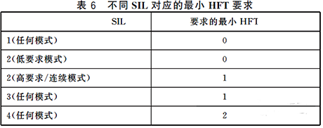11.4.5 執(zhí)行某個具有特定SIL的SIF的SIS(或SIS子系統(tǒng))的最小HFT應(yīng)符合表6,以及11.4.6和11.4.7(如果適用)。