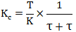 公式得到比例增益Kc=0.5,由圖1可以發(fā)現(xiàn)其設(shè)定值階躍響應(yīng)曲線還是有衰減振蕩,這說(shuō)明上面的比例增益計(jì)算公式還是太強(qiáng)了。根據(jù)前面的試驗(yàn)我們還知道設(shè)定值階躍響應(yīng)振蕩和被控對(duì)象的純滯后時(shí)間直接相關(guān)?;谏厦娴目紤],自衡對(duì)象的純比例控制器整定公式更新為: