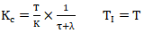 自衡被控對象可以用三個參數(shù)描述:穩(wěn)態(tài)系數(shù)增益K、動態(tài)系數(shù)時間常數(shù)T和純滯后時間τ。Lambda整定方法使用下面的公式確定自衡對象的PID參數(shù):