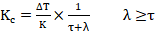 第一步首先只考慮純比例控制不考慮積分作用,計算公式與自衡對象的Lambda整定方法類似:
