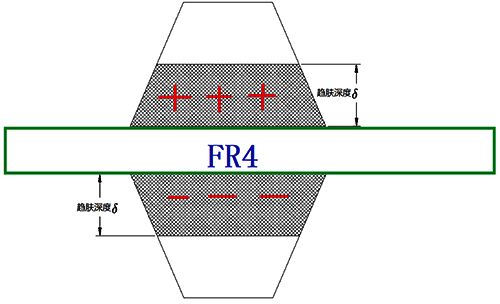 上面所說的趨膚效應是單根高頻線,與其他線隔離的一個狀態(tài),如果在線路板中,高頻信號線是處在一個與很多信號交織的過程,那這樣趨膚效應會發(fā)生什么變化呢?