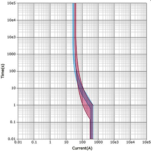 例如,當(dāng)過載電流為100A時(shí),二者都會(huì)動(dòng)作,雖然看起來D32的曲線(紅色)在LRD32曲線(藍(lán)色)下方,意味著前者有可能先動(dòng)作,但是二者在該區(qū)域是重疊的,實(shí)際無法確定誰先誰后。