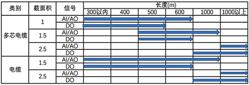 注:本安儀表的電纜敷設(shè)距離因?yàn)閿?shù)據(jù)的缺乏,本文不做討論。