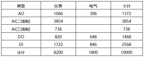 假定某項(xiàng)目有1萬個(gè)I/O,根據(jù)之前9個(gè)項(xiàng)目數(shù)據(jù)統(tǒng)計(jì)系統(tǒng)I/O類型占比,系統(tǒng)I/O點(diǎn)分布如下表。