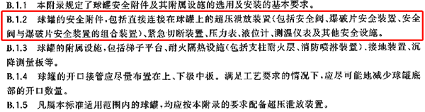 而現(xiàn)行的GB12337-2014《鋼制球形儲罐》中安全附件是涵蓋了儀表的,這與老容規(guī)一致,將來升版后應(yīng)該也會改掉吧。
