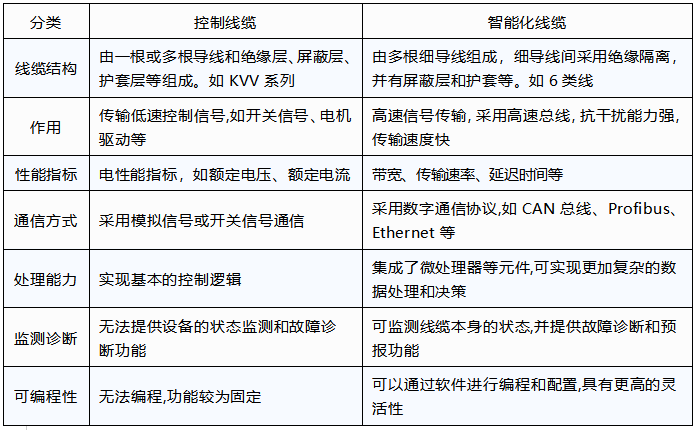 表1 控制線纜與智能化線纜的主要區(qū)別