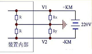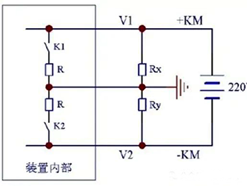 正常情況下,Rx與Ry都等同于無窮大,平時沒有電流通過,接在DC220V之間的就只有兩個相等的R了,兩個相等的電阻分壓并接地,正、負(fù)對地電壓就是±110V了。
