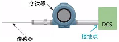 *分體傳感器外殼和分布式控制系統(tǒng)(DCS)處的屏蔽接地——變送器處無(wú)接地。