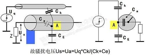 Ua=Uq*Ck/(Ck+Ce)(注:前提是有一定的頻率)