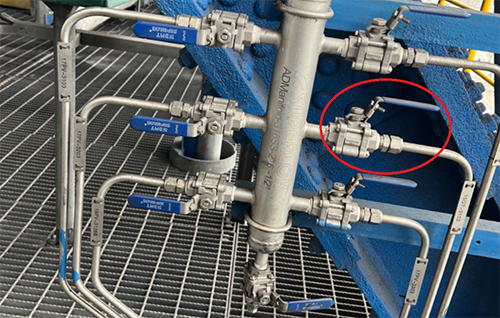 2)將氣源手閥的手柄用喉箍/扎帶/鐵絲等固定在相應的儀表風管道上,待需要動作氣源手閥時拆除扎帶;