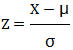 在這個公式中,Z是轉換后的標準值,X 是原始數(shù)據(jù)點的值,μ是原始數(shù)據(jù)的平均值和σ是原始數(shù)據(jù)的標準差。