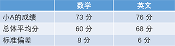 也就是說,當標準差為1時,小A的數(shù)學、英語成績標準差分別是1.625、1.333。不同學科的成績轉化為標準得分后,變得可比較了。