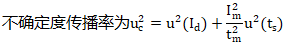 式中:ΔIt為溫度變送器在溫度t時的示值誤差;Id為溫度變送器的輸出電流值;Im溫度變送器的輸出電流量程;tm為溫度變送器的溫度輸入量程;ts為溫度變送器的輸入溫度值;t0為溫度變送器輸入的下限溫度;I0為溫度變送器的輸出電流的理論下限值;不確定度傳播率為: