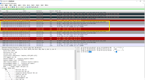 接著是查看 Port:49586這一組連接報文,MES側(cè)的18164到S7服務器側(cè)消失了,這報文丟失了嗎?網(wǎng)絡狀況完好的情況下到底時丟失了還是路由到甚至交換到其它地方?序號1011出現(xiàn)的TCP Out-Of-Order的原因表示1011的Seq=1比莫名其妙出現(xiàn)的1009號報文Seq=3的順序號小,這表明TCP通信出現(xiàn)亂序,可是亂序為什么出現(xiàn)在網(wǎng)絡狀況良好,且在連接階段呢?