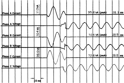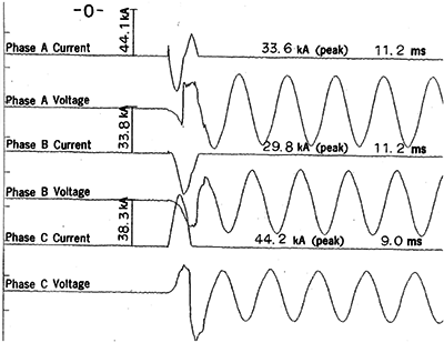 比如,某框架斷路器分?jǐn)囝A(yù)期短路電流50kA,由于該框架斷路器無(wú)限流能力,分?jǐn)鄷r(shí)間為28.8ms,而且分?jǐn)噙^(guò)程中斷路器需要承受或接通短路電流峰值104kA,約等于50×2.1=105kA的短路電流峰值。