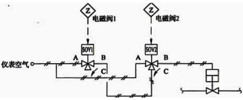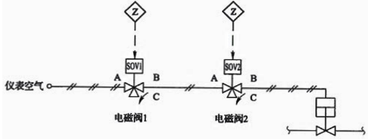 當(dāng)電磁閥為雙電磁閥串聯(lián)時(shí),如圖所示: