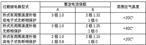 表4 三極過載繼電器僅兩極通電時(shí)的動(dòng)作范圍