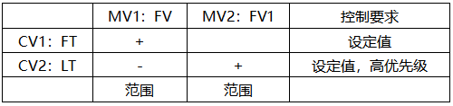 這個方案如果用APC如何實現(xiàn)呢?變量和模型都不需要變化,只需要將LT這個CV設置成高優(yōu)先級就能實現(xiàn)上述復雜控制方案。如何時候首先保證液位在設定值,如果有自由度則保證FT也在設定值,否則自動放棄流量控制。