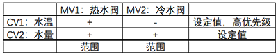 如果用上圖下邊的先進(jìn)控制,只要設(shè)置水溫的高優(yōu)先級,就會(huì)在自由度充足時(shí)通知控制水溫和水量,在自由度不足時(shí)有限保證水溫。