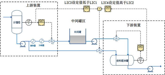 4、如果上游裝置間歇生產(chǎn),則保留LIC1、LIC2和LIC4即可;
