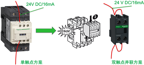 雖然廠家提供的輔助觸點最小導通容量為17V/5mA,觸點所在回路的電壓很多時候會超過24V,電流也在10mA左右,但實際應(yīng)用中,會偶發(fā)性出現(xiàn)不導通故障。